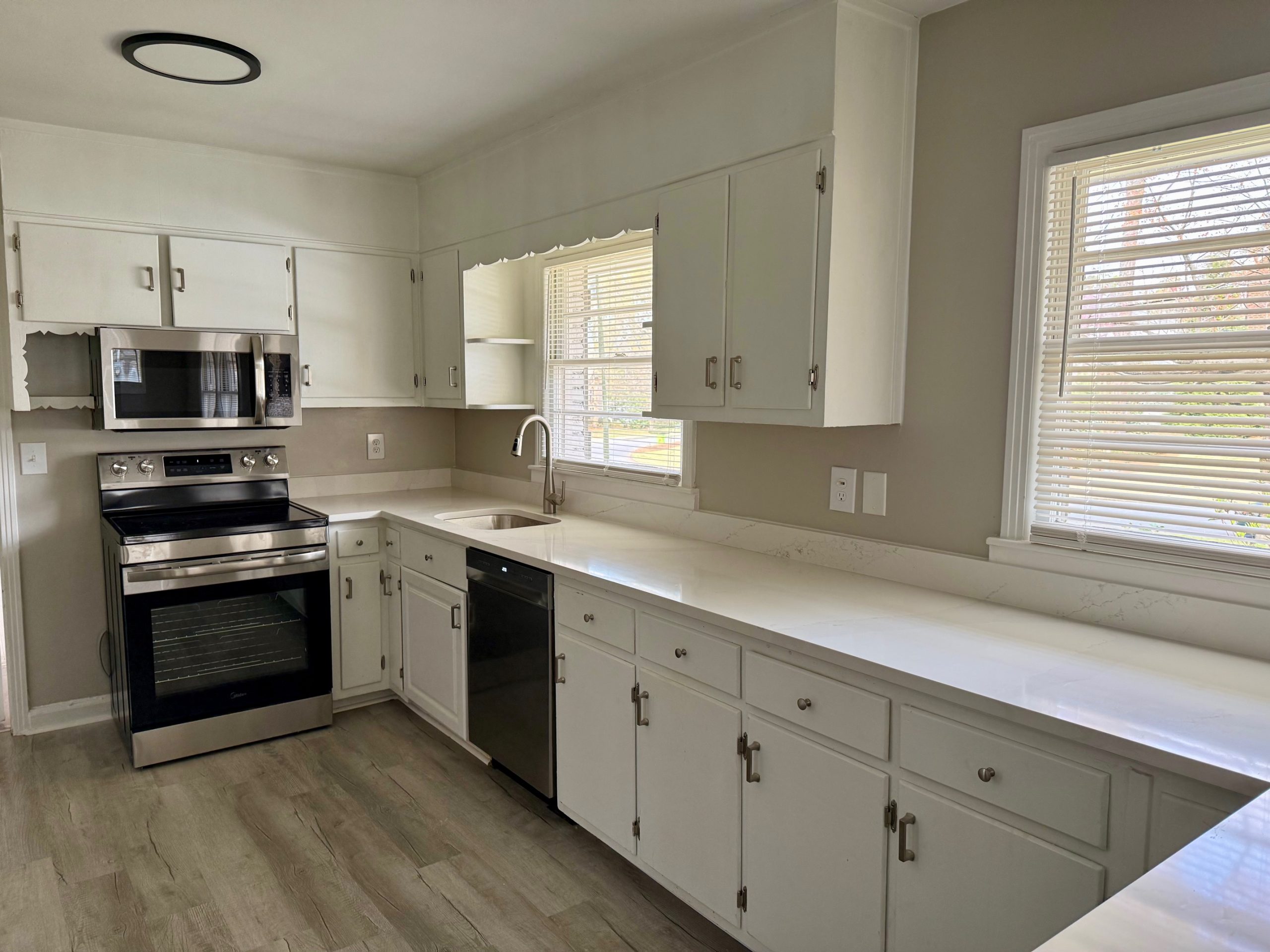 Available now! This bright 3-bedroom 2-bath house has a quiet backyard on a private lot. Plenty of natural light and large windows in living room overlooking backyard. New kitchen appliances being installed shortly. Newly refinished hardwood floors, tile flooring. Updated master bath. Central heat and air with ceiling fans. Covered parking for 1 car. Great accessibility and walking distance with sidewalks to new Abernathy Park and Sandy Springs City Center with shopping and dining amenities, seasonal farmer’s market and seasonal free concerts on the City Green.